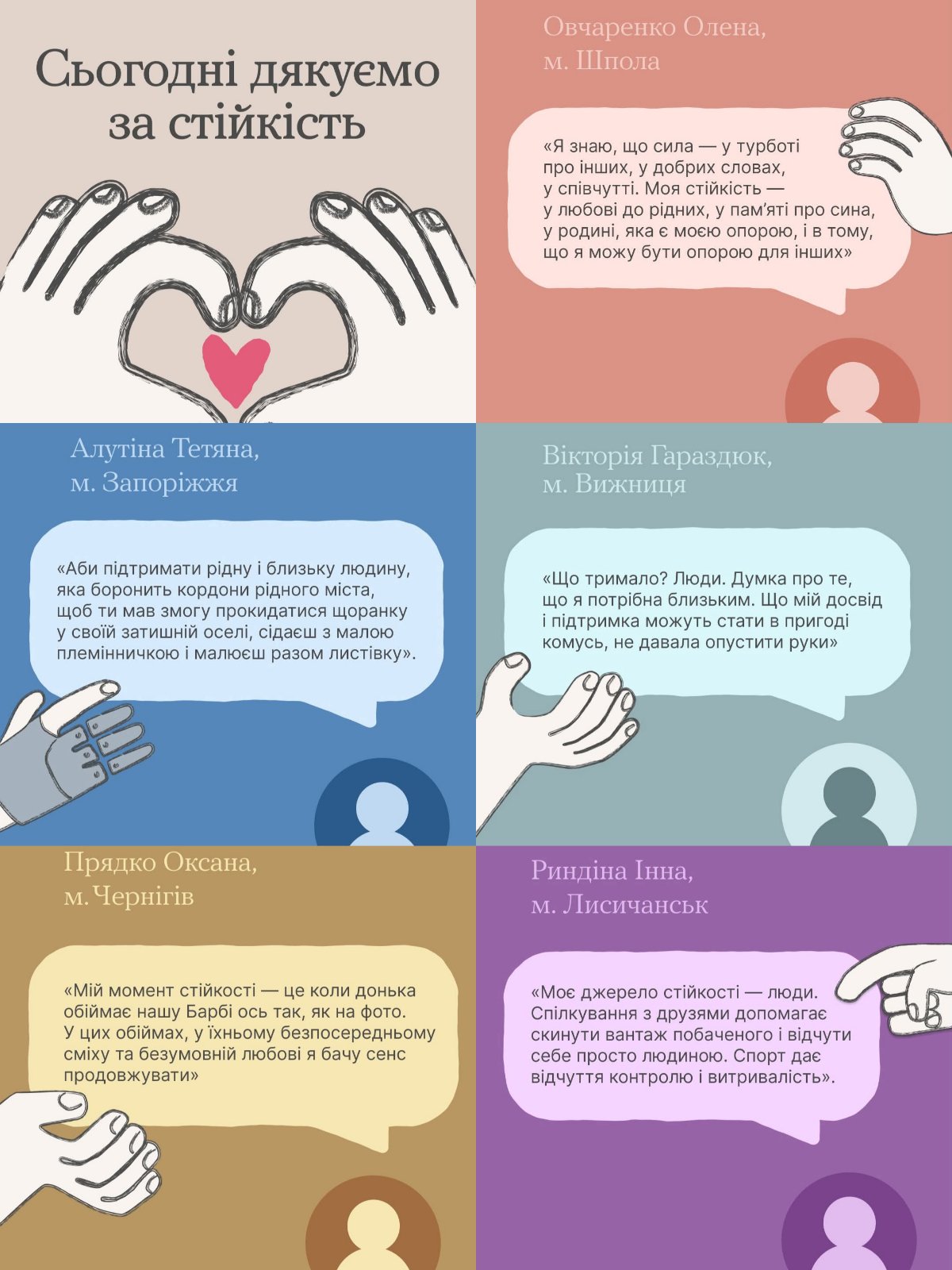 У День подяки ми найперше скажемо «спасибі» захисникам і захисницям — надішлемо повідомлення, зателефонуємо, потиснемо руки 🤝 І подякуємо усім, хто плекає свою стійкість: турбується про себе й близьких, створює і зберігає хороші спогади, проявляє ініціативу. Ваша стійкість підтримує і нас 😌 А кому ти подякуєш сьогодні і за що? Пиши в коментарях ✏️