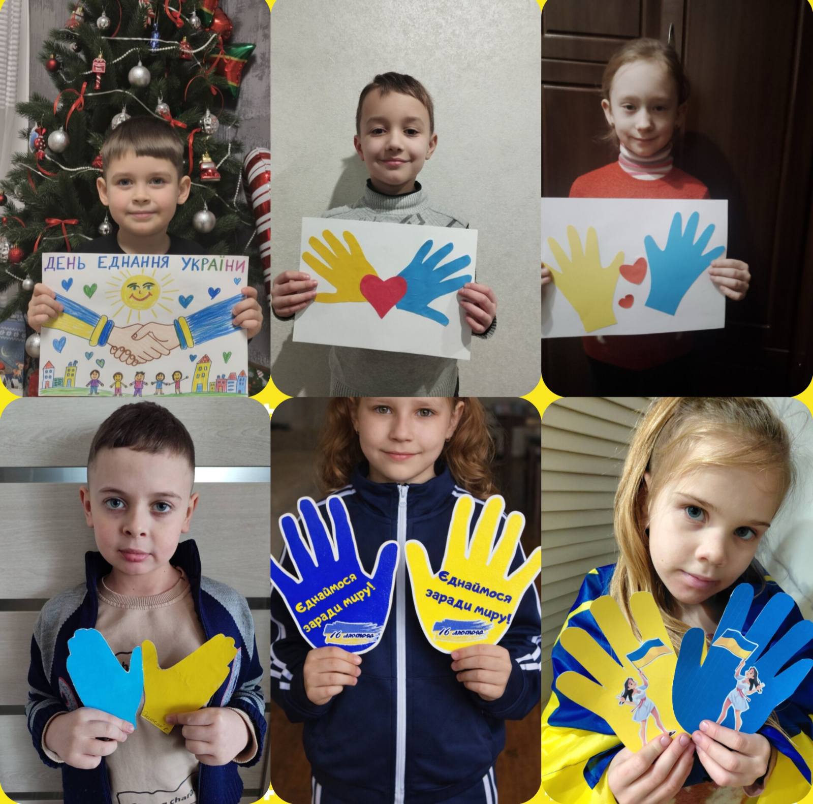 Саме сьогодні всі українці відзначають важливе для кожного свято – День єднання .Це свято нагадує нам про те, як важливо бути згуртованими , підтримувати одне одного та разом будувати майбутнє нашої країни . Адже тільки в єдності наша сила , тільки разом ми можемо подолати будь – які труднощі . Учні нашої гімназії теж активно долучились до заходів присвячених Дню єднання . Діти розгадували кросворди , ребуси , грали в гру « Українців обʼєднує», пригадали хроніку подій лютого 2022 р. Сьогодні ми не просто виконували завдання – ми обʼєднались заради перемоги .Бо в єдності наша сила . День єднання — свято, що нагадує нам про силу дружби, підтримки та згуртованості. Учні виготовляли символічні долоньки єдності, створювали живий ланцюг єднання та коло дружби, демонструючи, що разом ми — сила! Такі заходи виховують у дітях любов до України, повагу один до одного та почуття єдності.