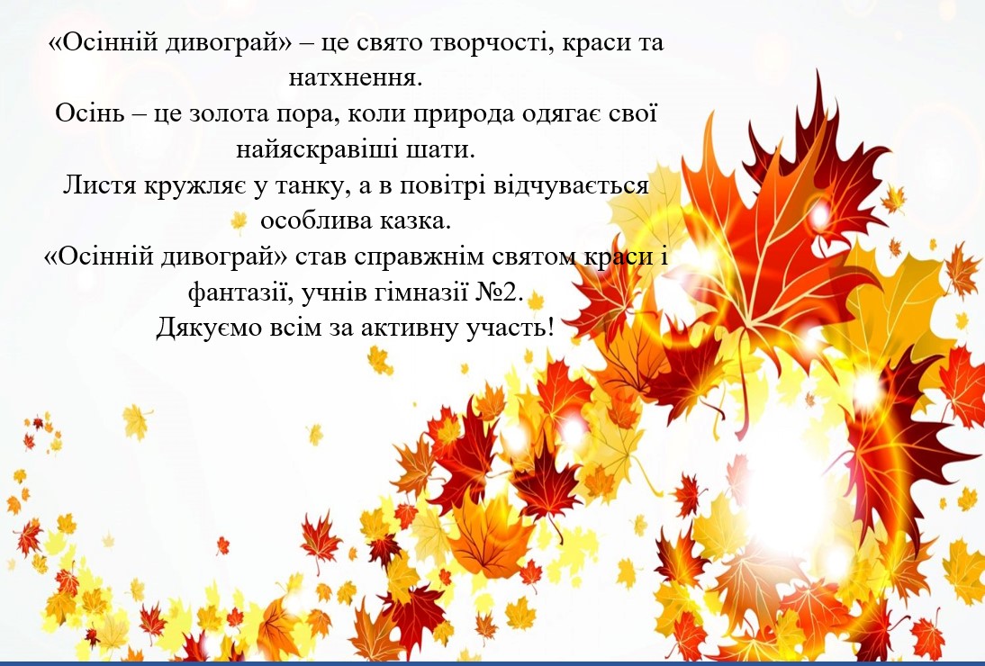 Зі святом дорогі діти, шановні колеги, батьки! Бажаю натхнення, терпіння та успіхів у всіх починаннях! Мирного неба нам усім!