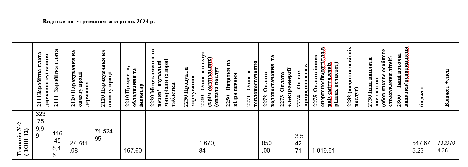 Видатки на утримання за серпень 2024 р.