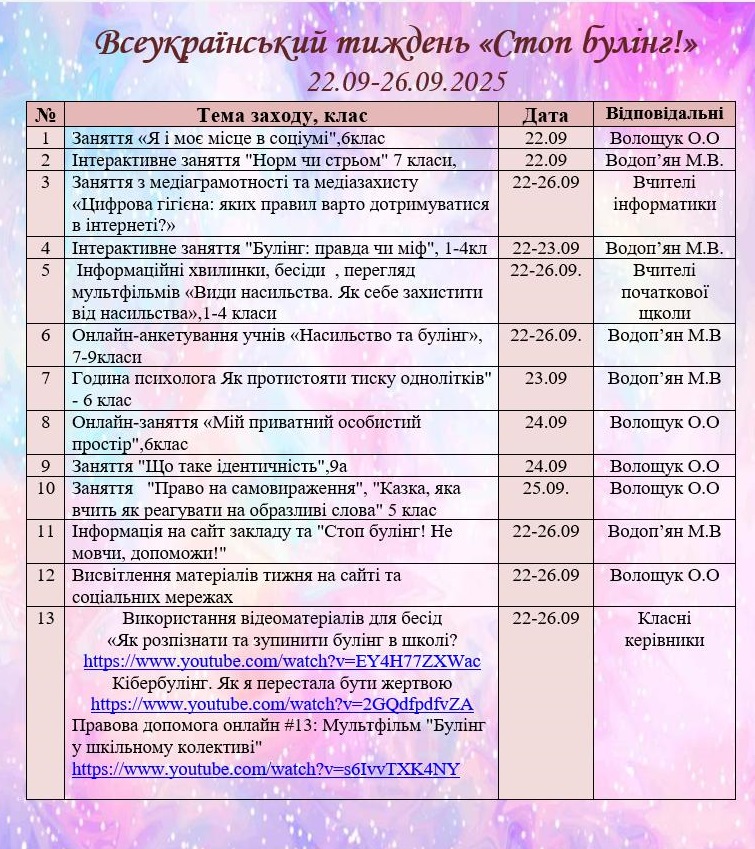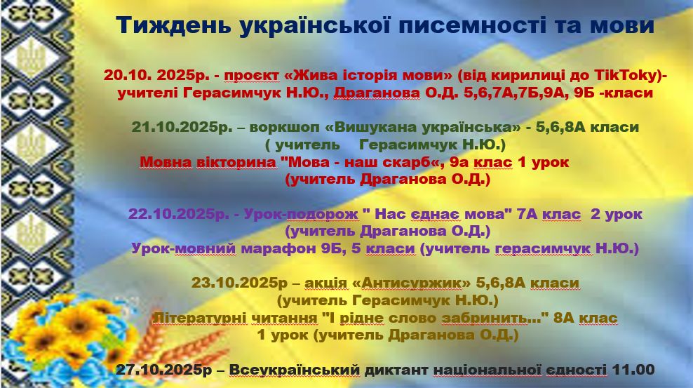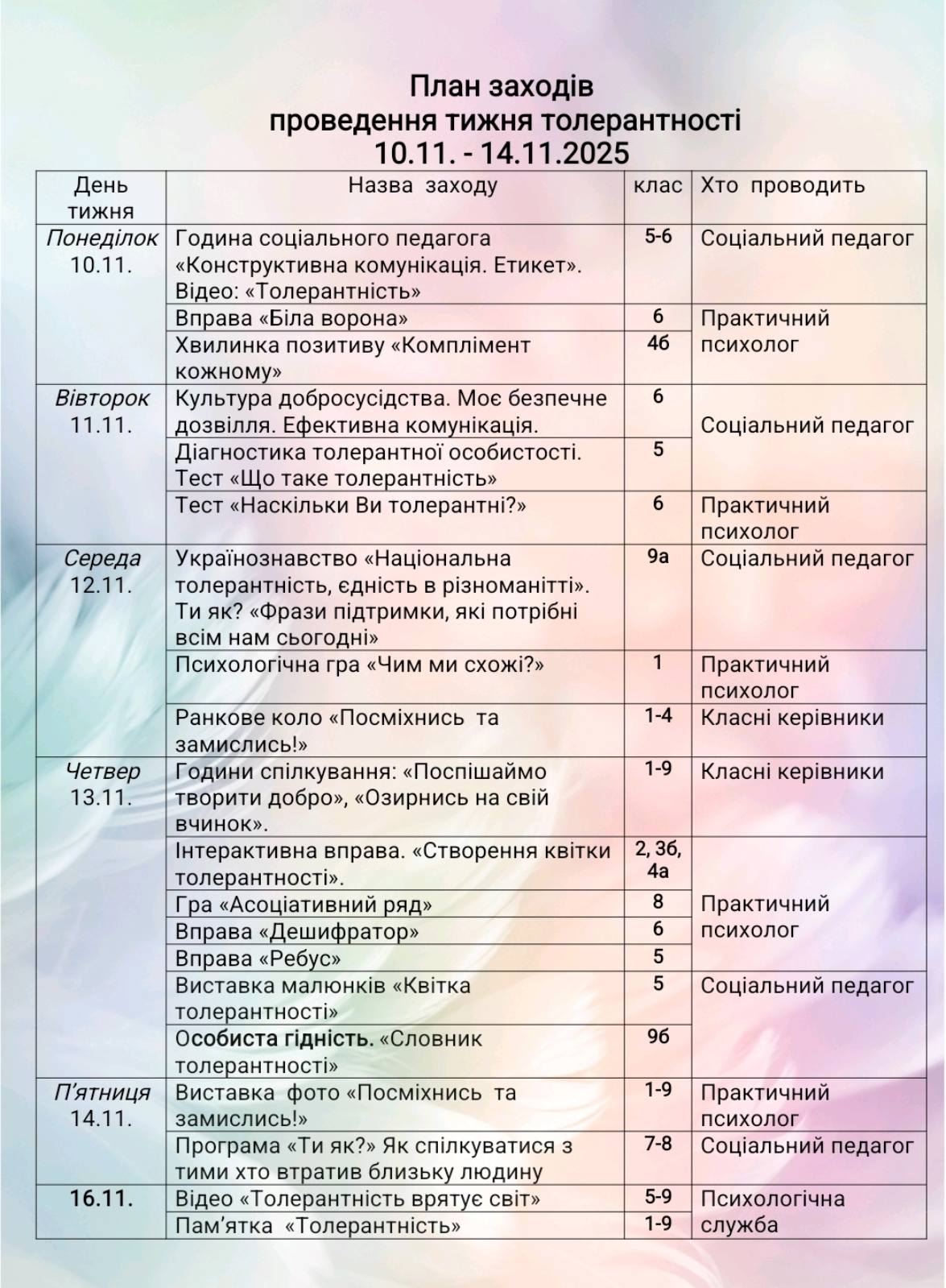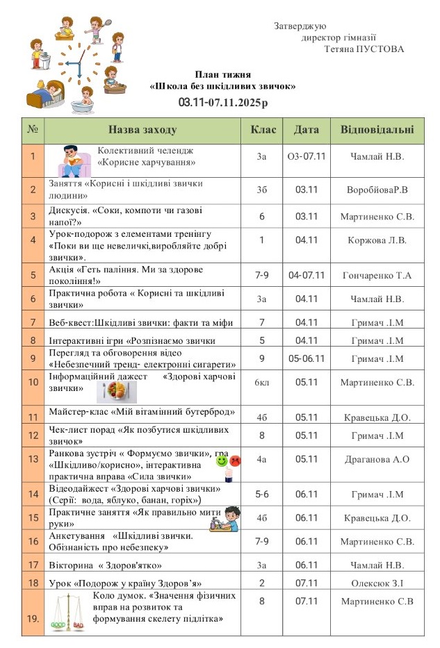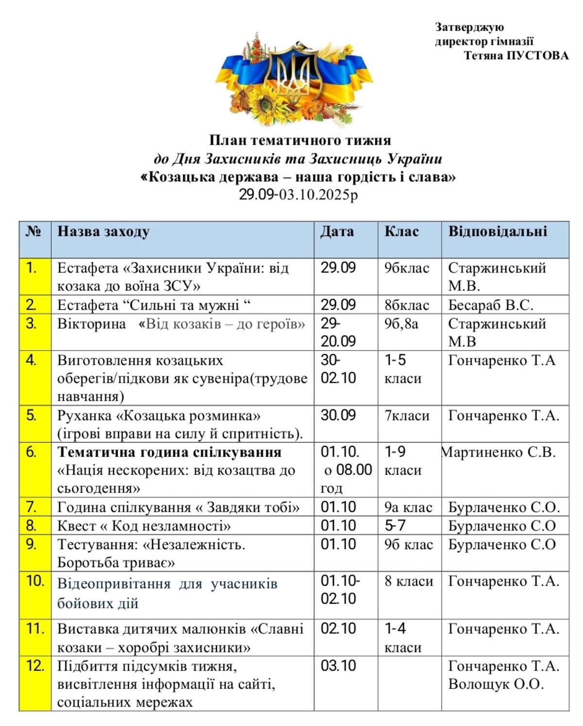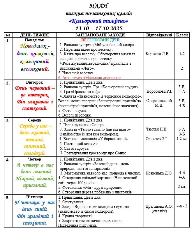 Циклограма виховних та предметних тижнів у 2024-2025 н.р.